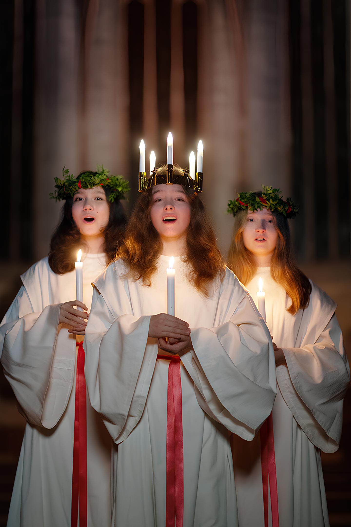 Mit Kerzenkrone und weißen Gewändern mit rotem Band wird in Schweden am 13. Dezember das Fest zum Gedenktag der heiligen Lucia gefeiert. Traditionell folgt der Chor singend mit Kerzen in den Händen der heiligen Lucia. Diesem Brauchtum folgt auch die Mädchenkantorei Basel und präsentiert in stimmungsvollem Ambiente und Kerzenschein traditionelle schwedische, deutsche und Schweizer Weihnachtslieder sowie bekannte Zyklen von Benjamin Britten und John Rutter für Mädchenchor und Harfe. Feiern Sie mit unseren jungen Sängerinnen das Luciafest, lassen Sie sich von weihnachtlicher Chor- und Harfenmusik verzaubern und singen Sie mit!