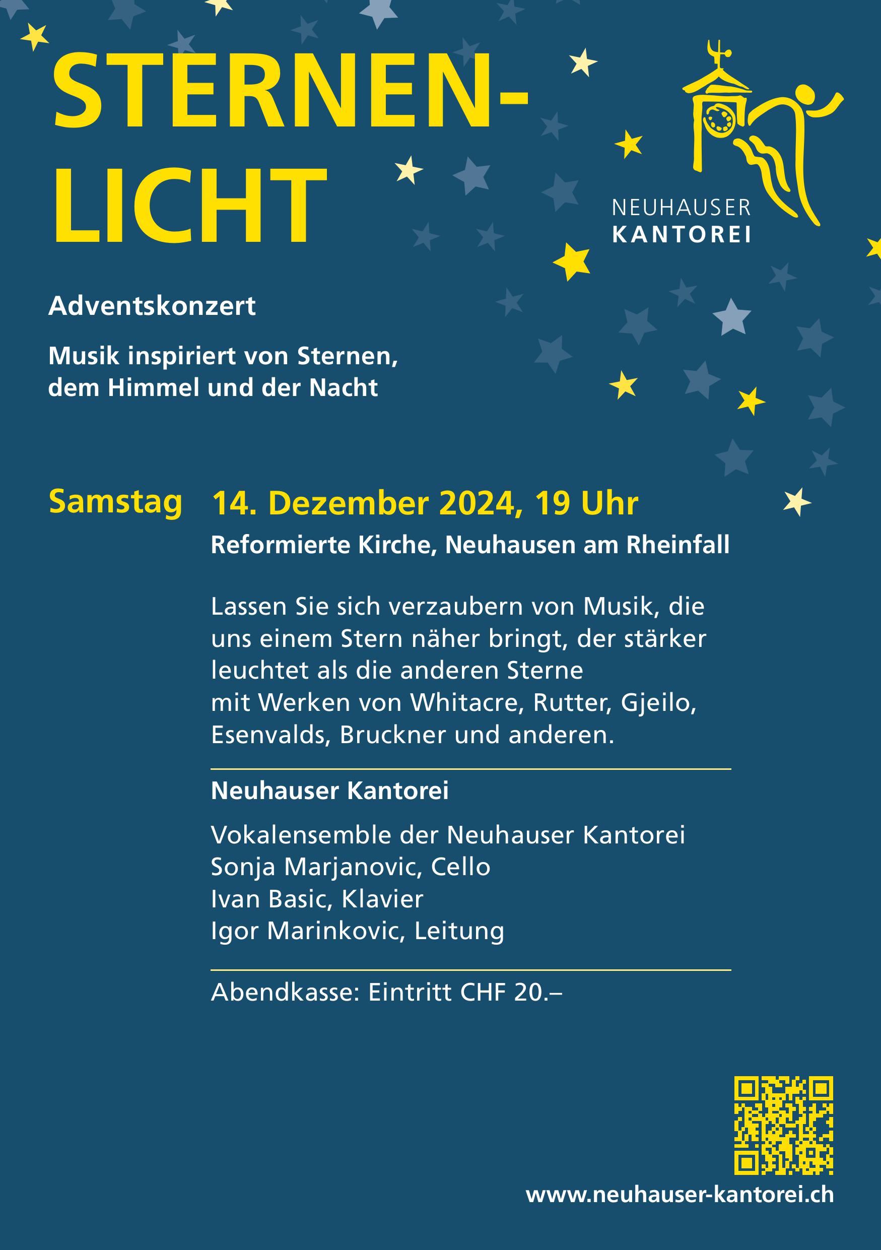 Musik inspiriert von Sternen, dem Himmel und der Nacht. Lassen Sie sich verzaubern von Musik, die uns einem Stern näher bringt, der stärker leuchtet als die anderen Sterne mit Werken von Whitacre, Rutter, Gjeilo, Esenvalds, Bruckner und anderen. Neuhauser Kantorei Vokalensemble der Neuhauser Kantorei Sonja Marjanovic, Cello Ivan Basic, Klavier Igor Marinkovic, Leitung