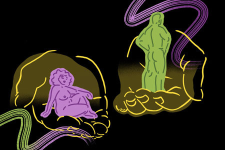 In der Schöpfungsgeschichte erkennt Gott, nachdem er Adam (den Menschen) erschaffen hat, dass es nicht gut ist, dass der Mensch allein ist. Gott nimmt eine Rippe Adams und schafft daraus Eva. Adam ist begeistert.