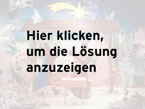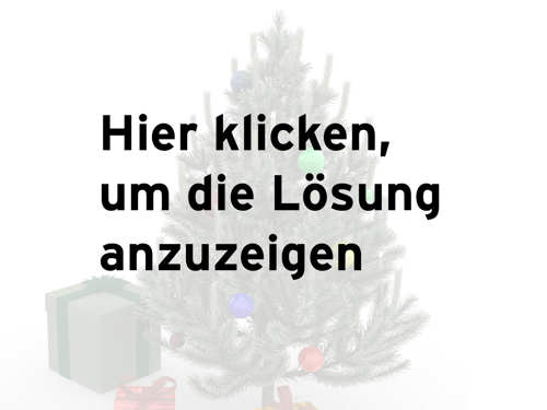 Von den vier Antworten ist immer genau eine korrekt. Geben Sie ZUERST Ihren Tipp ab und klicken Sie DANACH auf das Bild, um die Lösung anzuzeigen. Googeln und schummeln verboten. Viel Glück!