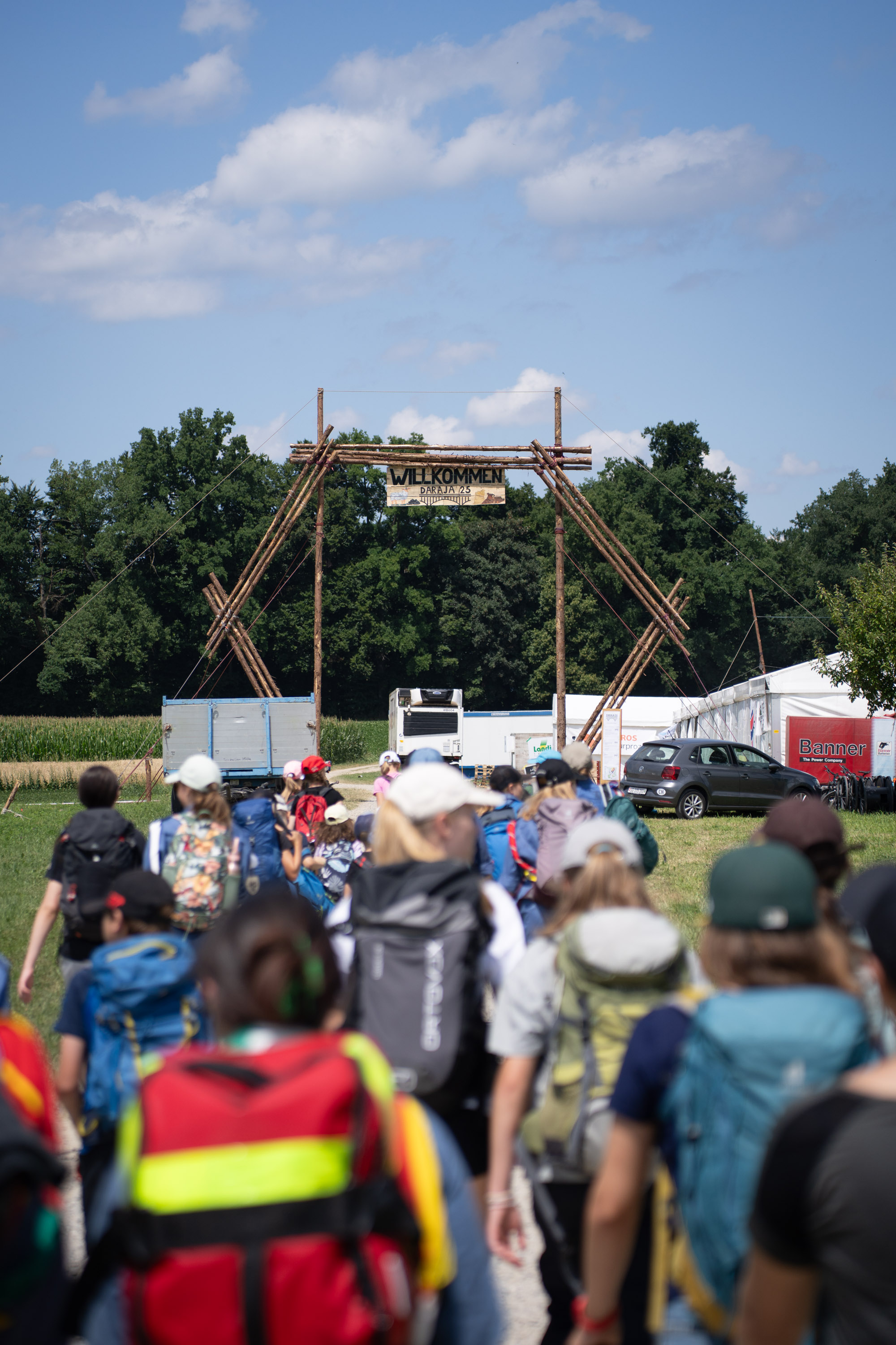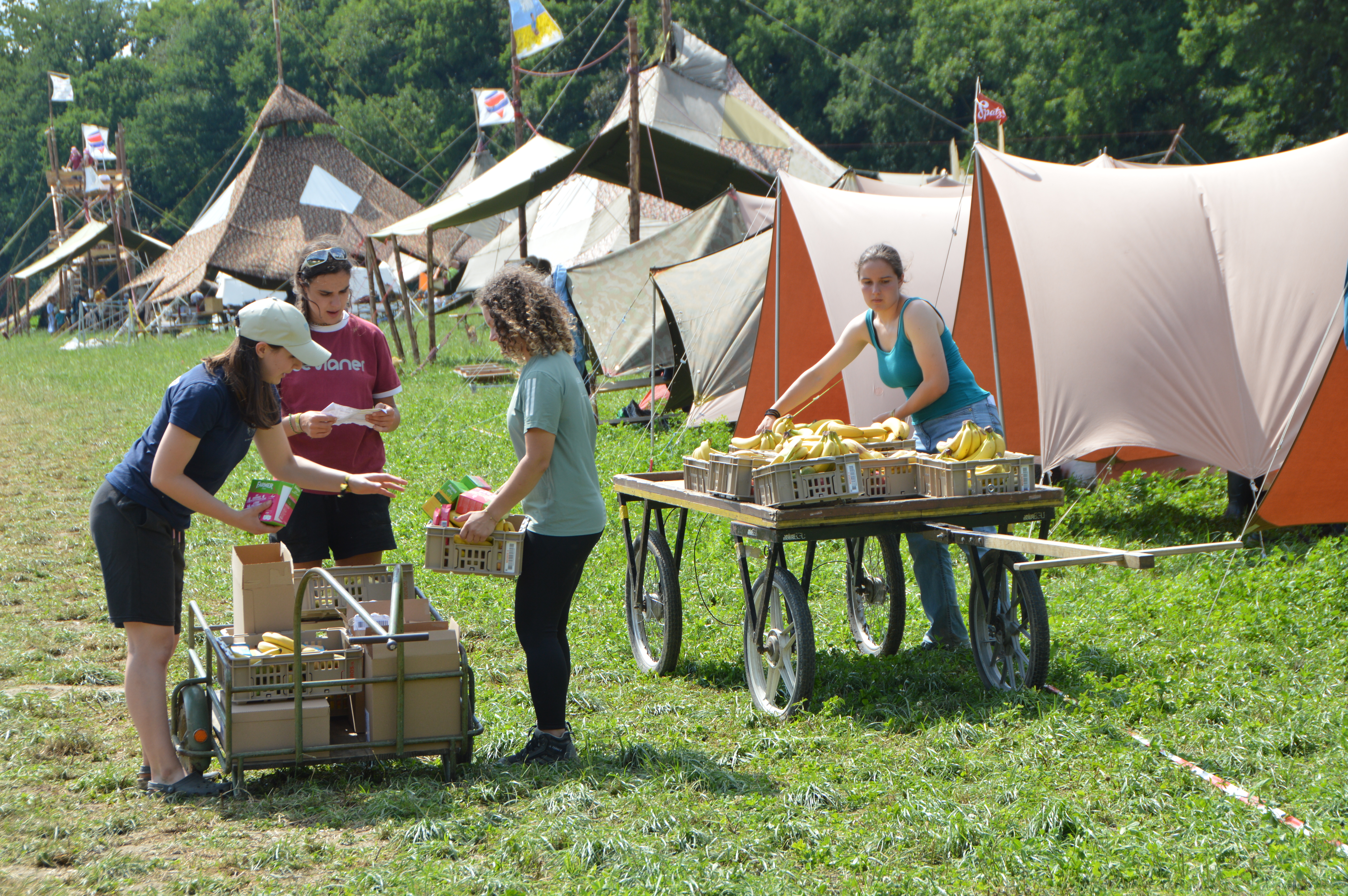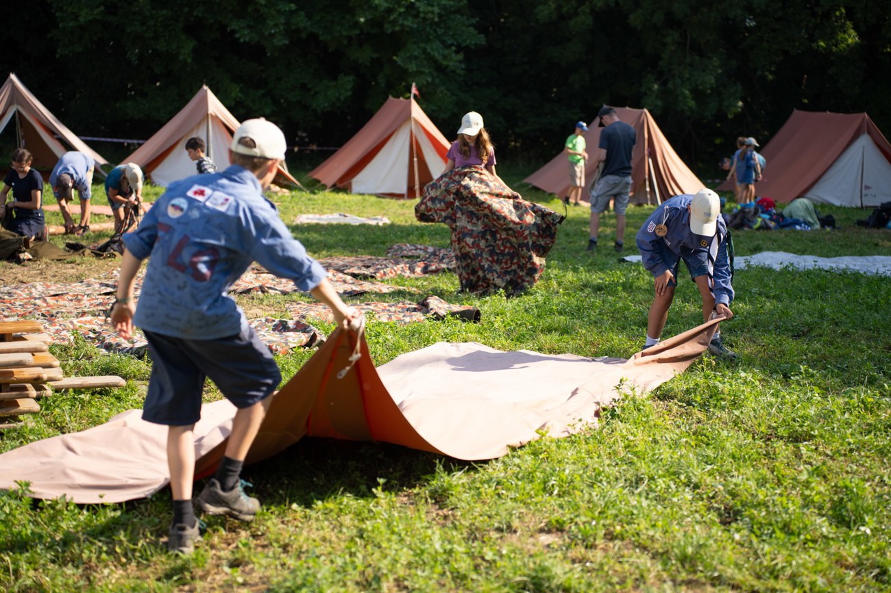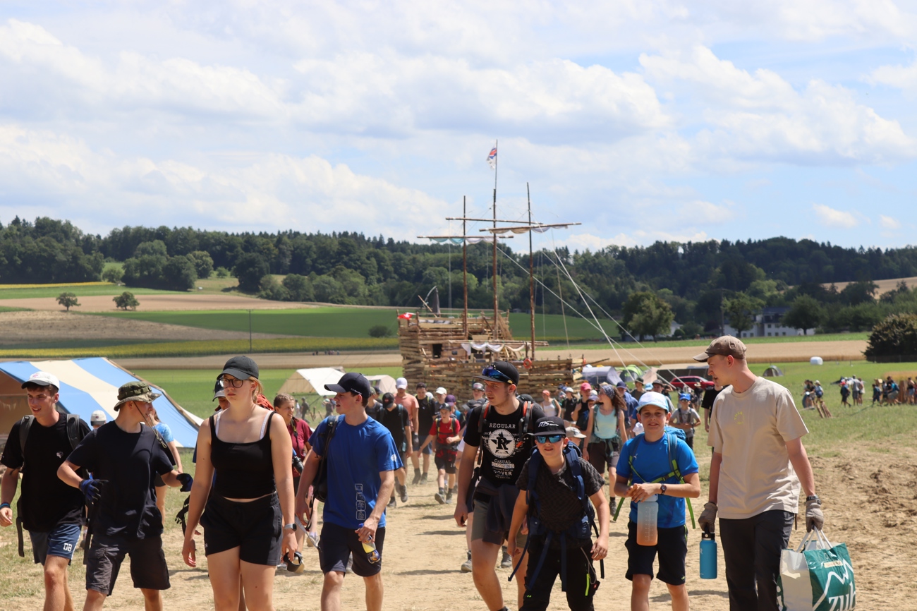 Am Samstag, 12.07.2025 war es dann so weit und die 26 Cevi-Abteilungen trafen auf dem Lagerplatz ein. Angereist mit dem ÖV, Velo und etappenweise zu Fuss, kamen die Gruppen aus Appenzell Ausserrhoden, St. Gallen, Thurgau und Graubünden sowie drei Gast-Abteilungen aus den Kantonen Basel-Landschaft, Zürich und Aargau in Gachnang an. Vor Ort wurden sie mit dem ersten Theater zum Lagerthema „Die Siedler von Matan“ begrüsst.