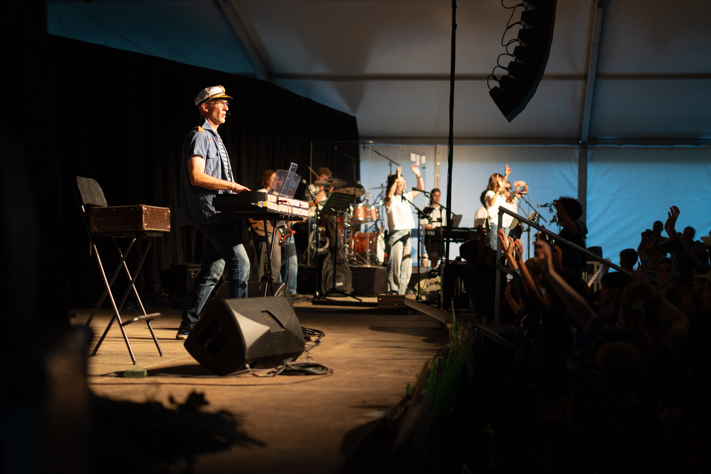Mitte des Lagers standen gleich zwei Highlights an: der Besuchsnachmittag sowie das Konzert des Schweizer Kinderliedermachers Andrew Bond. Am Nachmittag erhielt das Daraja25 Besuch von über 1‘000 Interessierten, viele davon Eltern, Freunde und Bekannte von Lagerteilnehmenden. Stolz führten die Kinder die Besucherinnen und Besucher auf dem Lagerplatz herum und erzählten von ihren Erlebnissen und neuen Bekanntschaften. Am Abend folgte dann das sehnlichst erwartete Konzert von Andrew Bond, der mit seiner Bühnenpräsenz und seinem Charme sowie den eingängigen Liedern alle zum Mitsingen brachte. Seine Lieder begleiteten die Lagerteilnehmenden die gesamte Woche über, wodurch „Schiff ahoi“ und der „Brääme-Tango“ zu echten Lagerhits wurden.