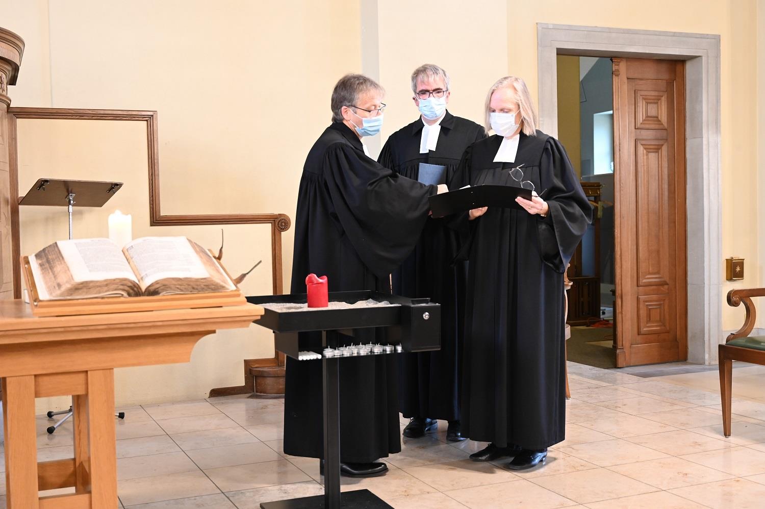 Pfarrerin Esther Walch Schindler hat nach zwei Amtsperioden das Dekanat Frauenfeld abgegeben. «Ich wollte keine Sesselkleberin sein und Platz für jemand Neues machen », sagt die erste und bisher einzige Frau in diesem Gremium. Dass mit Stefan Wohnlich wiederum ein Mann gewählt wurde, habe Dekan Tibor Elekes setzt das Pfarrehepaar Andreas und Sabine Gäumann in Arbon ein – eine seiner Aufgaben als Dekan des Pfarrkapitels. laut Walch Schindler mit dem geringen Anteil an Pfarrerinnen im Thurgau zu tun. Sie sagt dazu: «Viele davon arbeiten Teilzeit und wollen keine Zusatzaufgaben.» Besonders an ihrer Tätigkeit schätze sie den Einblick in andere Kirchgemeinden sowie in kantonale und strategische Themen. Dazu natürlich auch der Miteinbezug vom Kirchenrat bei theologischen Arbeiten sowie ihre Unterstützung für Pfarrkolleginnen und -kollegen.