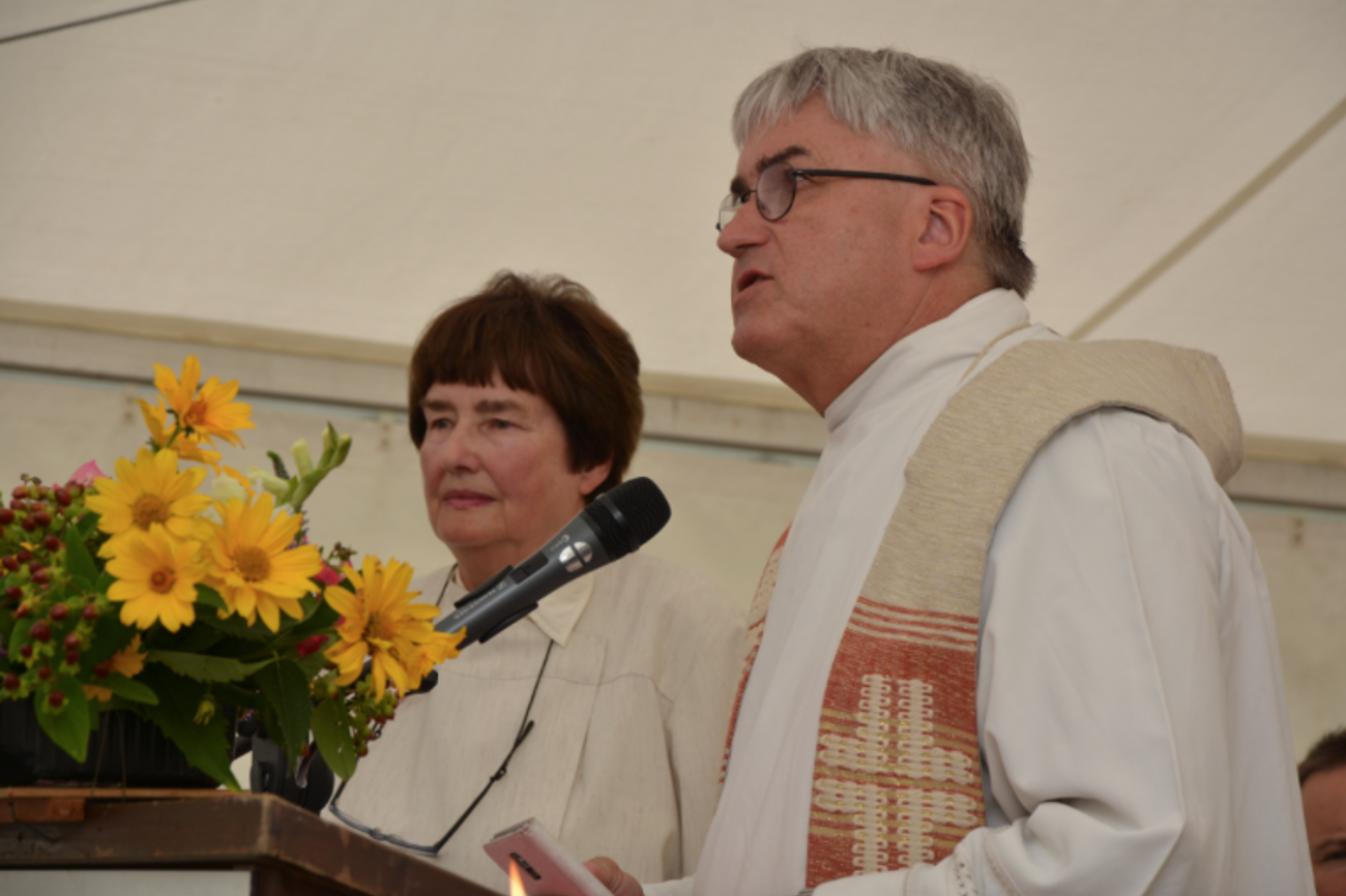 Pfarrerin Christa Heyd und Pfarrer Marcel Ruepp haben auch dieses Jahr zu einem Dank-Gottesdienst auf den Nollen geladen und trotz einem grösseren Zelt war es überfüllt. Wenn man diesen beiden Geistlichen zuhört, braucht es keine Kathedrale. Der Geist Gottes schwebt durch das Zelt, widerspiegelt sich in den fröhlichen Gesichtern der Zuhörer, geht zu Herzen jedes Einzelnen und in einer Predigt darf auch einmal herzhaft gelacht werden. Warum auch nicht, seien wir doch fröhlich und dankbar, dass wir Gottes Kinder sind, dass wir zum christlichen Glauben stehen dürfen. Wie vielen ist das verwehrt.