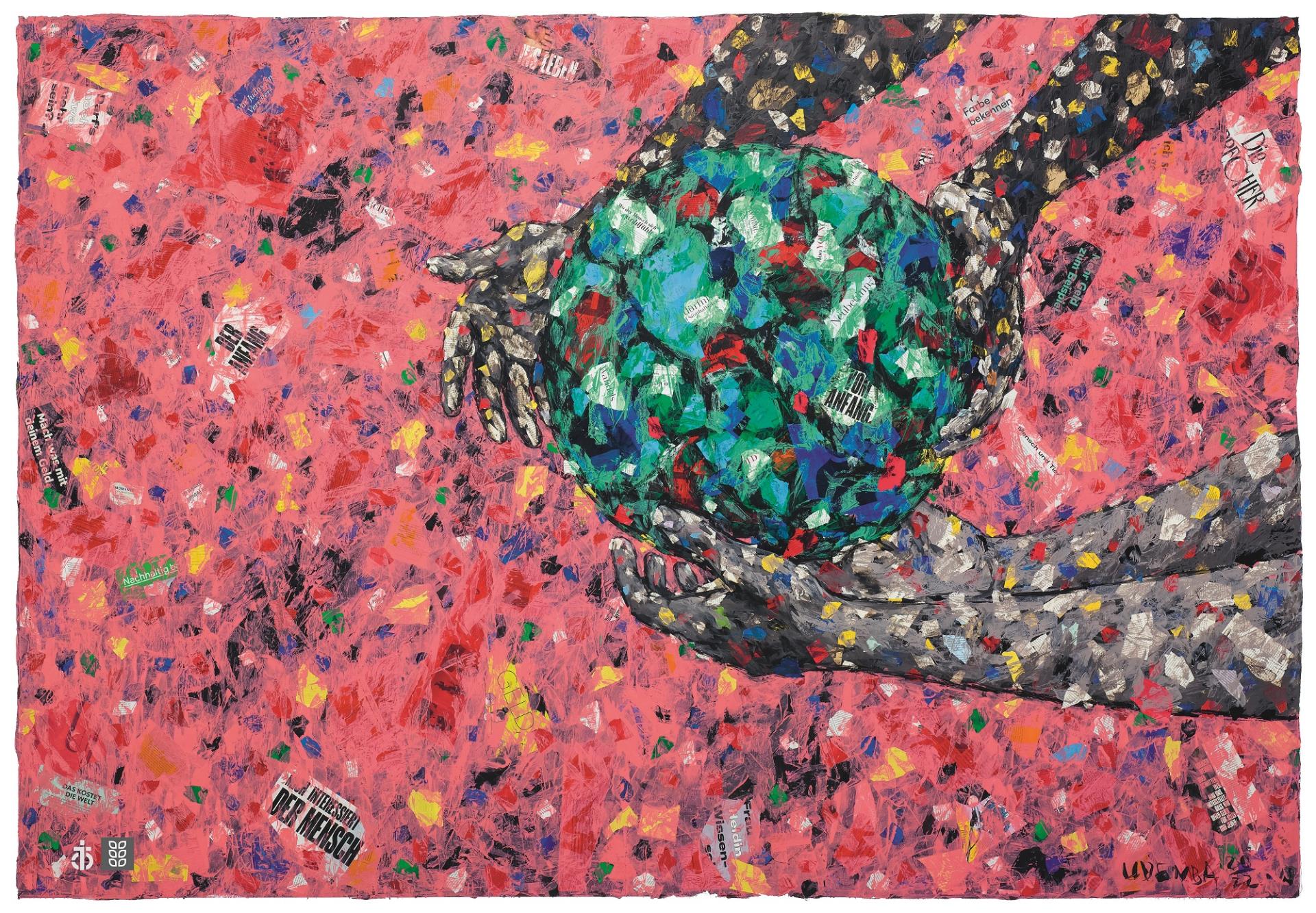 «Was ist uns heilig?» So lautet die namensgebende Frage hinter dem diesjährigen Hungertuch. Erschaffen hat es der deutsche Künstler Emeka Udemba, der Wurzeln in Nigeria hat. Er hofft, dass das Sujet auf dem Hungertuch «Austausch und Diskussion» auslöst: «Es reicht mir nicht, wenn es einfach nur schön ist. Wenn man das Bild jeden Tag anschaut und immer etwas Neues entdeckt, öffnet sich ein Raum für den Austausch. So hat man etwas zu erzählen.»