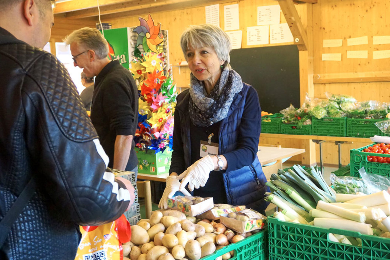 «Gipfeli? Weggli? Was hättest du gerne?» – «Tomaten? – Kleine? Grosse?» – «Salatsosse oder Cola?» Sechs freiwillige Markthändlerinnen stehen hinter den kreisförmig angeordneten Tischen, die mit bunten Lebensmitteln gedeckt sind. Jeden Freitagnachmittag verwandelt sich der Kindergarten der Baselbieter Gemeinde Sissach nämlich in einen Wochenmarkt. Edith S. preist Jogurt, Milchreis und Hafermilch an, während Elisabeth M. Lauch und Fenchel verteilt.