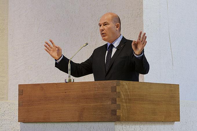 Der Baselbieter Regierungsrat Anton Lauber ist nicht nur für die Finanzen zuständig. Er ist auch Kirchendirektor. Da bietet es sich an, auf die Kanzel zu steigen. Dies geschah in der ökumenischen Kirche Flüh. Lauber predigte über Hass und Terror, Freiheit und Toleranz.