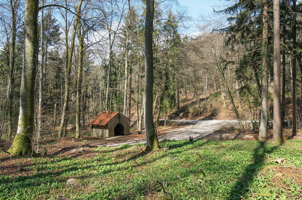 Der Täuferweg zieht sich dahin und steigt an. Mit der Anstrengung und dem Schweiss, der sich im Nacken sammelt, wird klar, warum hier die Verfolgten in der Abgeschiedenheit Schutz vor den Häschern fanden. Bald einmal taucht der Weg in den Wald ein, die Kühle tut gut. In der Nähe der Hohlwege sollen in den Rodungen die Hütten der Täufer gestanden haben.