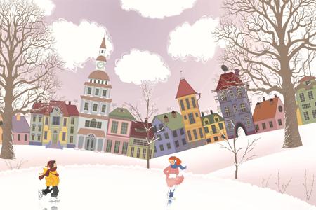 Es war zu der Zeit, in der die Nächte lang und klar, die Tage kurz und trübe sind. Der Stadtpark lag einsam da. Der kleine See war zugefroren. Eine späte Sonne mühte sich, den Dunstschleier aus den Baumkronen zu vertreiben. Gemach tanzten vereinzelte Schneeflocken vom Himmel. Katzen staunten hinter Eisblumenfenstern. Erst gegen Mittag stellten sich Spaziergänger ein. Sie hatten sich in dicke Jacken und viel wollenes Zeug gehüllt, aber die Kälte kroch an Beinen und Armen hoch. Der Schnee knirschte unter den Schuhen. Die Atemluft zeichnete kurzlebige Wölkchen vor ihnen her, und ihre starren Gesichter schienen zu bereuen, dass sie sich aus der warmen Stube gewagt hatten. Jemand sagte: «Saukalt.» Auf einmal eine Kinderstimme: «Schau! Schau! Eistänzer! Oh!» In der Tat hatte sich der kleine See unmerklich in eine Tanzfläche verwandelt, keiner wusste wie. Darauf bewegten sich Paare, die Herren in farbigen Joppen und Hosen, die Damen in kühn schwingenden, glockenförmigen Röcken und mit kecken Hüten, von denen weisse Bänder flatterten.