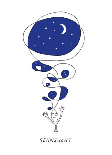 Doch schliesslich zog es ihn von der grossen Leinwand zu den kleinen Zeichnungen. Auf Papier entwirft er ganze Universen. Seine Kunst lebt vom Minimalismus. Grimm arbeitet vor allem mit Tusche und feinen Linien. Mit wenigen Strichen deutet er ganze Welten an. Statt ausgearbeiteter Kompositionen bevorzugt er fragmentarische Szenen, die Raum für Fantasie lassen. Leerräume sind ein Markenzeichen seines Stils – sie schaffen Platz für Atem, Stille und eigene Gedanken.
