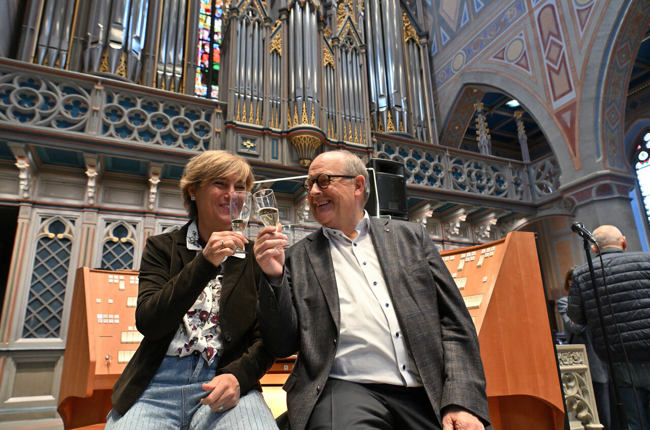 Ein entscheidender Ermöglicher – nebst Ideengeber und Initiant Bernhard Ruchti und Orgelkommissionspräsidentin Deborah Weber – war alt Stadtrat Fredy Brunner. Als es mit der Geldbeschaffung irgendwann harzte, sei er zur Stelle gewesen. «Fredy ist der Held, Fredy kann alles», verkündete die Kommissionspräsidentin augenzwinkernd, bevor sie zum Schluss der Feier den Korken knallen liess.