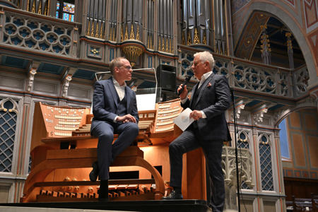«Fast alles ist möglich», erläuterte Bernhard Ruchti im Gespräch mit Röbi Koller. Besonders orchestrale Musik eigne sich, und davon gebe es auch in der modernen Popmusik des 20. und 21. Jahrhunderts nicht zu wenig. Der Laurenzen-Organist hat an diesem Abend mehr als einmal gezeigt, dass er mehr will, als einfach die ausgetretenen Traditionspfade abzuschreiten. Die Experimentierfreude wird etwa durch die eingebaute Perkussion zusätzlich beflügelt. «Bernhards Wünsche wurden allesamt erfüllt», erklärte Deborah Weber. Sie selbst hätte sich noch ein zusätzliches «Fern-Werklein» gewünscht, wie sie es auf einer Orgel-Besichtigungsreise durch Europa in Trondheim gesehen haben. Das wäre technisch allerdings nicht umsetzbar gewesen.