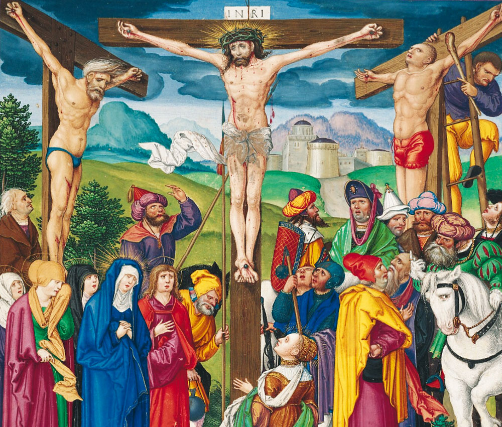Kreuzigung Jesu von Matthias Gerung, 1530, aus der Ottheinrich Bibel. | Bild: Wikimedia, CC BY-SA 4.0