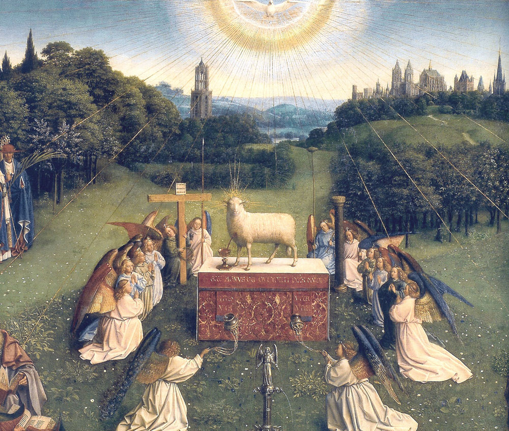 Jan van Eyck – Die Anbetung des Lammes und der Quell des Lebens, 1432, Genter Altar. | Bild: Wikimedia, gemeinfrei