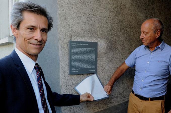 Gut hundert Menschen verfolgten an der Neustadt 39 mit, wie der Initiant Peter Bösch gemeinsam mit dem Stadtpräsidenten Peter Neukomm eine Gedenktafel enthüllte. Die Inschrift erinnert an die grausamen Judenmorde im späten Mittelalter. Die Tafel hängt im damaligen Judenquartier, wo sich die Synagoge befand. In den Jahren 1349 und 1401 verbrannte Schaffhausen die Juden in der Stadt nach Verleumdung und Folter auf dem Scheiterhaufen.