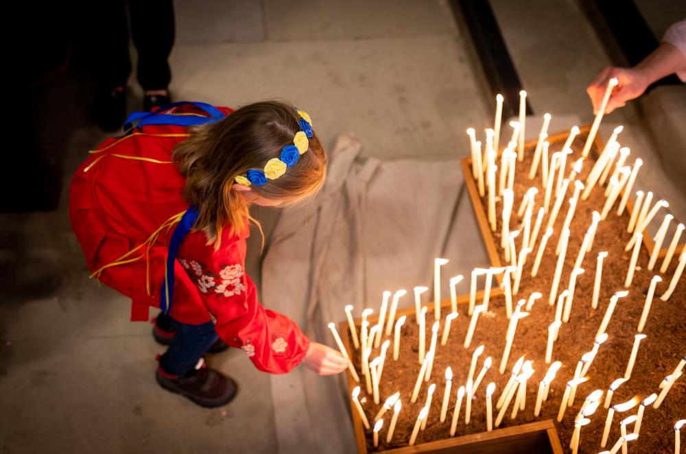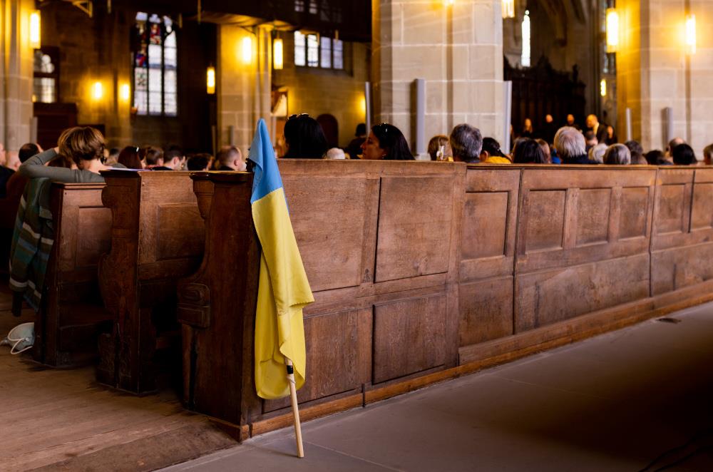 Am 24. Februar 2022 erwachten die Menschen in der Ukraine im Krieg. Russlands Präsident Wladimir Putin hatte den Überfall auf das Nachbarland befohlen. Auf den Tag genau ein Jahr nach der Invasion luden die Schweizer Kirchen ins Berner Münster zu einer ökumenischen Gedenkfeier ein. Während am Freitag rund um die Kirche die Fasnacht Lärm und Leben in die Gassen brachte, beteten im Münster rund 500 Menschen für Frieden in der Ukraine und auf der ganzen Welt.