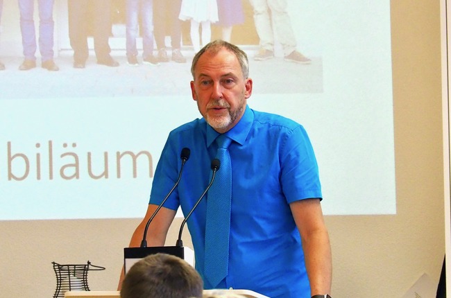 Am verregneten Jubiläumssonntag ruft Pfarrer Martin Jud nun alle Anwesenden in den Saal zum Festakt: «Es goht jetzt wiiter!» Man merkt sofort: Pfarrer Jud ist hier zu Hause und freut sich über die zahlreich erschienene Gästeschar, um mit ihr auf das Zehnjährige anzustossen. Als erster Festredner überbringt Alois Morger, Präsident des Kirchenverwaltungsrats der Katholischen Kirche Eschenbach, seine Glückwünsche: «Ich mag mich noch an die Eröffnung erinnern, als ob sie erst gestern gewesen wäre!» Die Zusammenarbeit zwischen den zwei Kirchgemeinden könne besser gar nicht sein, versichert er.