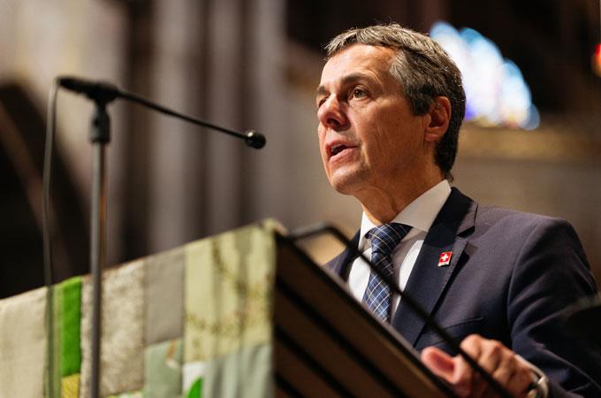 Die Feier zur Absichtserklärung zwischen den Evangelischen Kirchen Europas und dem Vatikan fand unter dem Stichwort «Frieden» statt. Für Bundesrat Ignazio Cassis gehört Friedensförderung zum guten Dienst der Schweiz und der Kirchen.