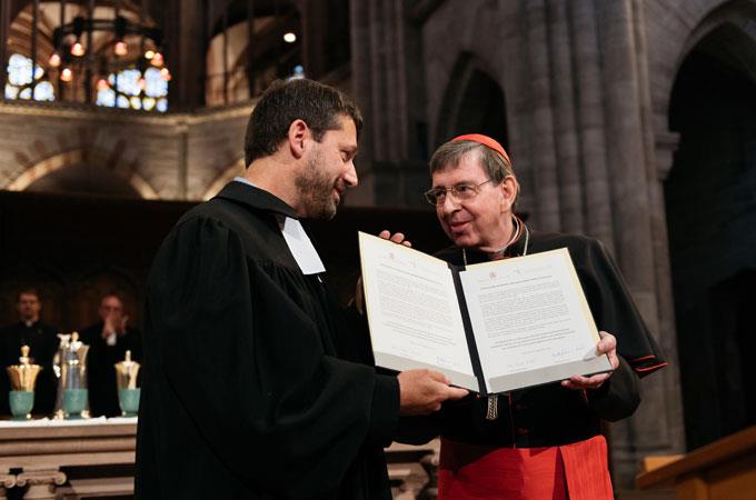 45 Jahre nach ihrer Gründung auf dem Leuenberg im Kanton Baselland trifft sich die Gemeinschaft Evangelischer Kirchen in Europa GEKE vom 13. bis zum 18. September erstmals wieder in der Schweiz, in Basel. Höhepunkt war am Bettag die Absichtserklärung zum gemeinsamen Dialog zwischen Evangelischen und Katholiken, die GEKE-Präsident Gottfried Locher und Kurienkardinal Kurt Koch unter den Augen von 650 Gästen im Rahmen eines Festgottesdienstes im Münster unterzeichneten.