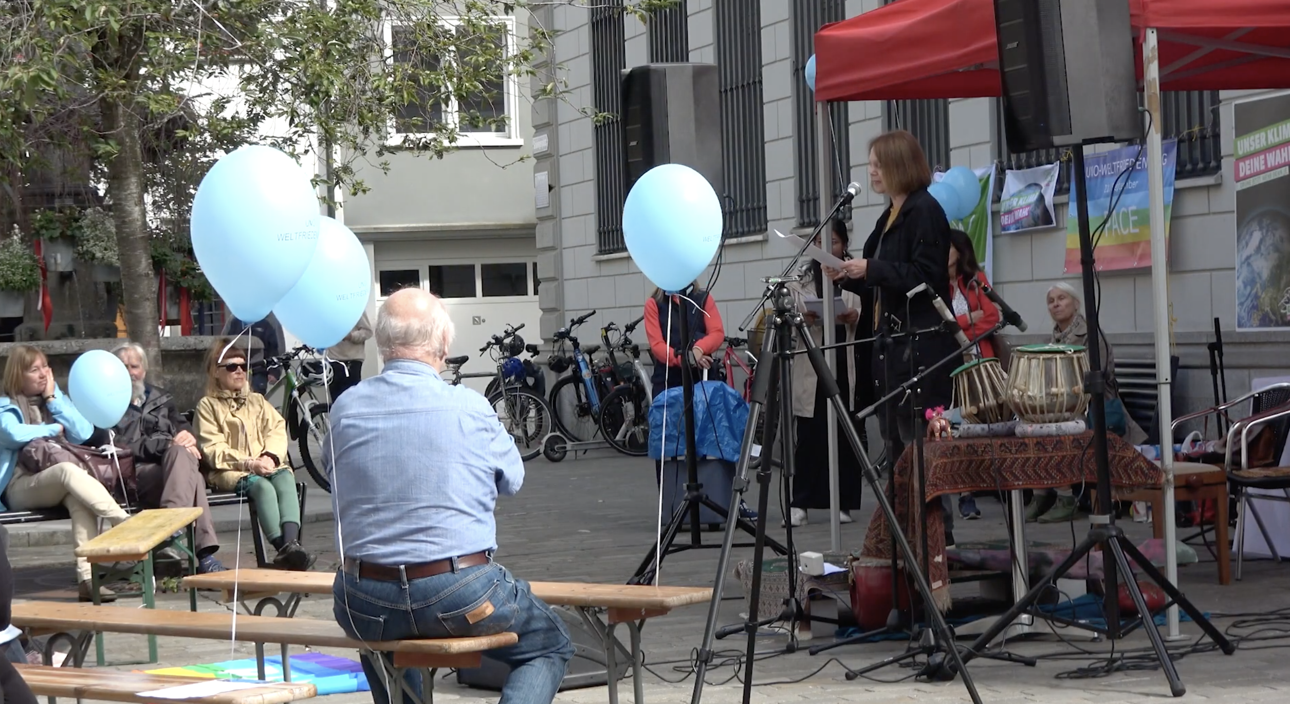Die Musik zwischen den Ansprachen kam von der «Padma Band» – indisch-europäische Rhythmen und Klänge, vorgetragen von Bettina Portmann, Sitar und Augustin Saleem, Tabla. Zum Abschluss zeigten die «Oriental Gypsies» unter Anleitung von Melani Hug farbenfrohe Tanzeinlagen, bei welchen zuletzt auch Gäste und Passanten mitmachten. Der Autor hat die Veranstaltung filmisch dokumentiert.