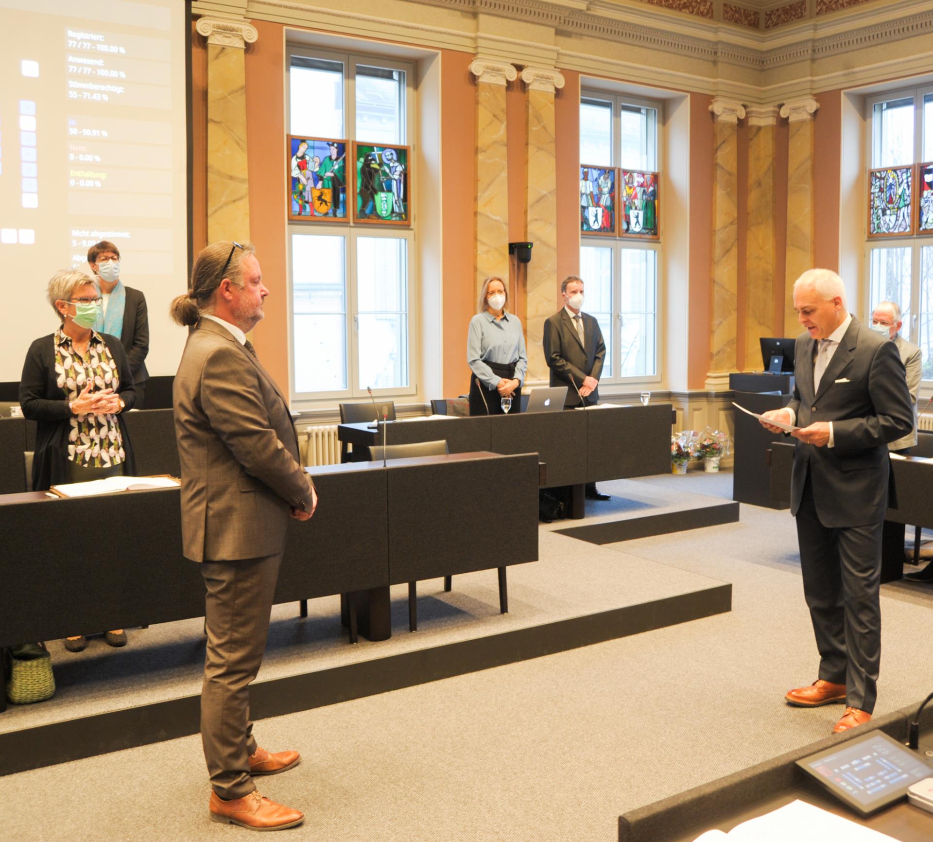Pfarrer Sebastian Doll ist neuer Kirchenratspräsident der Evangelisch-Reformierten Landeskirche des Kantons Glarus. Pfarrer Sebastian Doll war bereits an der Frühlings-Synode gewählt worden und legte an der Herbst-Synode das Gelübde ab. Im darauffolgenden Gottesdienst wurde er von Synode-Präsident Andreas Hefti in das Amt eingesetzt.