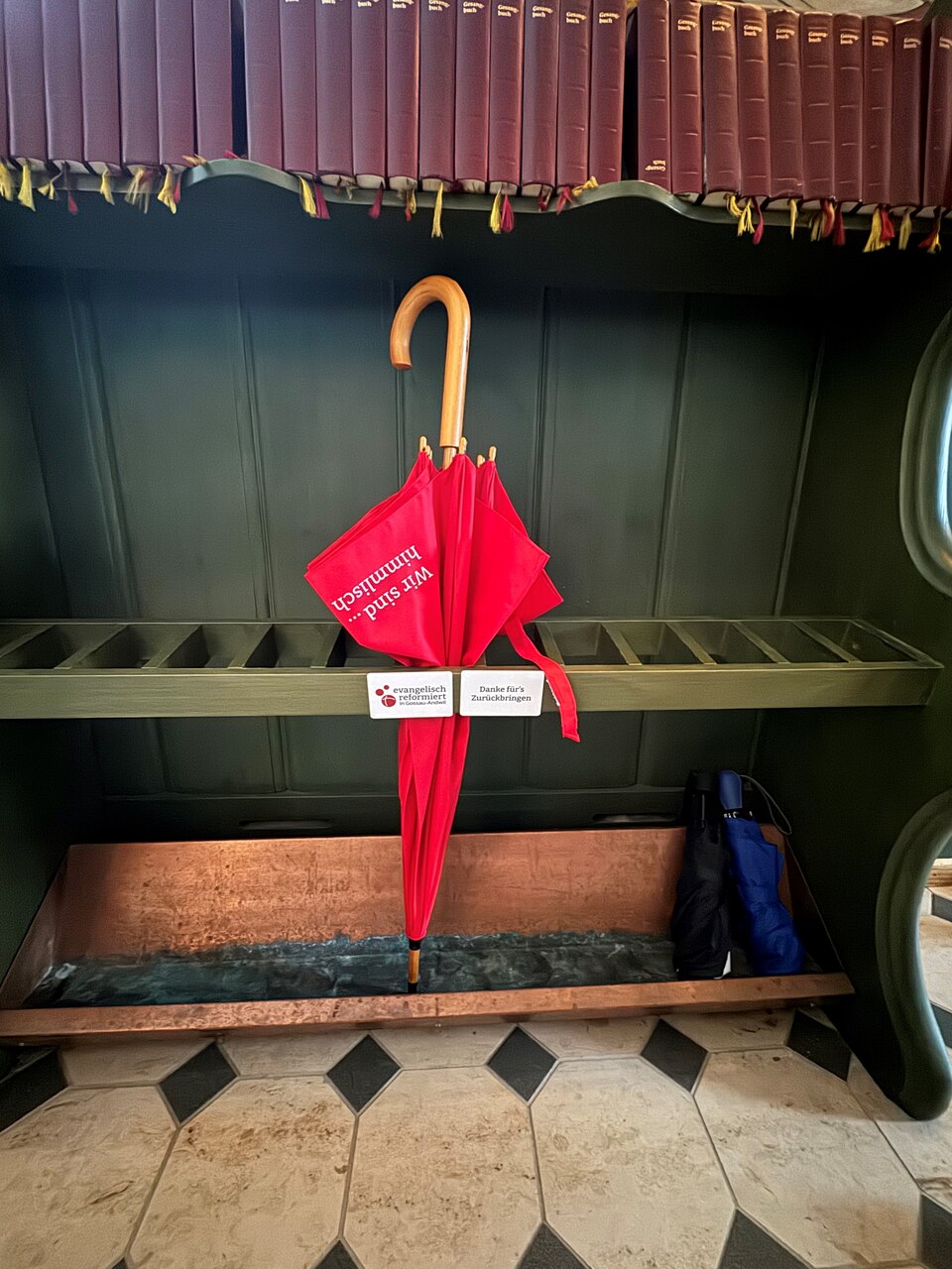 Wann immer die Besucherinnen und Besucher dieser drei Lokalitäten von einem Platzregen oder Gewitter überrascht werden, sollen die roten Ausleihschirme nützlich sein: Als schützendes mobiles Dach und als Erinnerung daran, dass der Mensch auch in garstigen Lebensmomenten himmlisch beschirmt ist. Die Kirchgemeinde Gossau-Andwil freue sich, wenn zahlreiche Schirmträgerinnen und Schirmträger diese frohe Botschaft durch Gossau tragen, schreibt Pfarrer Christian Bernhard-Bergmaier in der Lokalausgabe des «Kirchenboten». Gleichzeitig dankt er, wenn die Schirme nicht allzu lange zu Hause ihr Dasein fristen, sondern so bald als möglich zurückgebracht werden können.