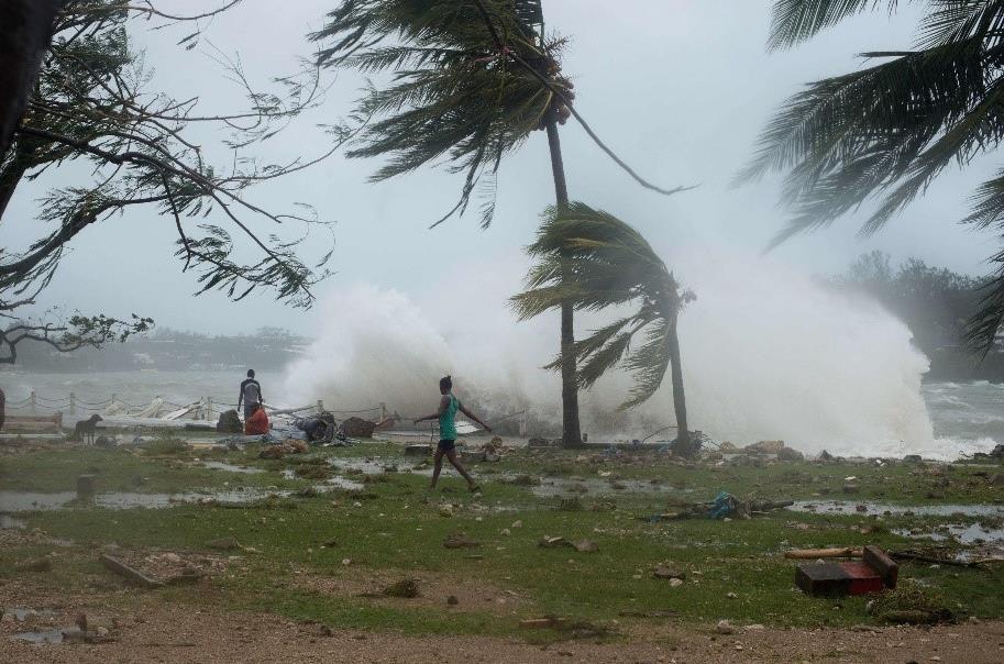 Laut Weltrisikoindex ist kein Land stärker von Umweltkatastrophen bedroht als Vanuatu, das sich über 83 Inseln östlich von Australien im Südpazifik erstreckt. Der steigende Meeresspiegel droht das Land wegzuspülen. Jährlich fegen acht bis zehn Zyklone über die Inseln hinweg. Im März 1995 vernichtete der Wirbelsturm «Pam» 96 Prozent der Ernte, 75’000 Menschen benötigten eine Notunterkunft. Letztes Jahr verloren mehr als 160'000 Menschen ihr Zuhause durch den Zyklon «Harold».