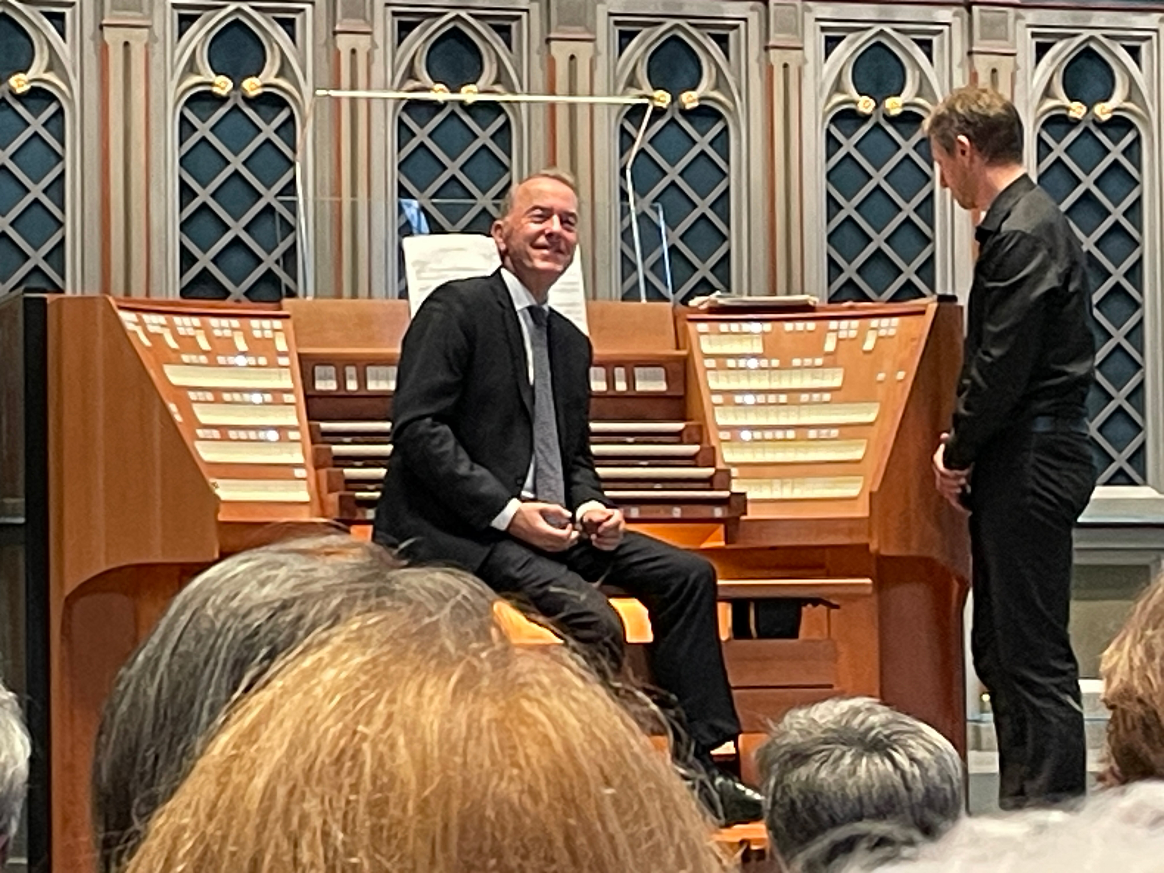 Und dann griff am Abend des 3. September, am Einweihungskonzert, Thomas Trotter in die Tasten. Dieses Klangfest, das einst auf Ostern vorgesehen war, schienen die Verantwortlichen nicht verschieben zu wollen. Die Programmstücke, von Johann Sebastian Bach über Tylmann Susato, Lionel Rogg bis hin zur Ouvertüre zur Oper Rienzi von Richard Wagner waren so gewählt, dass sie das Publikum in ein Klangbad eintauchen liessen: Es bimmelte links, es flötete rechts, die integrierte Kuhn-Orgel beschallte von vorne. «Es ist, als ob man im Klang schwimmt», sagte Karl Schimke, der in der Mitte des Konzertes Trotter zur Orgel Stellung beziehen liess. Er begrüsst es, dass der Spieltisch nicht mehr versteckt ist, sondern mitten im Chorraum steht, das Publikum dem Spiel der Hände, der Bewegung der Beine und dem Bedienen der Pedale durch die Füsse folgen kann und so auch ein optisches Erlebnis hat. Und doch fehlte an diesem Sonntag der Bass, der den typischen Orgelklang ausmacht, der den Körper ergreift, durchdringt, ihn vibrieren und mitschwingen lässt. Der Bass wird kommen, die sieben fetten Jahre stehen schliesslich noch bevor.