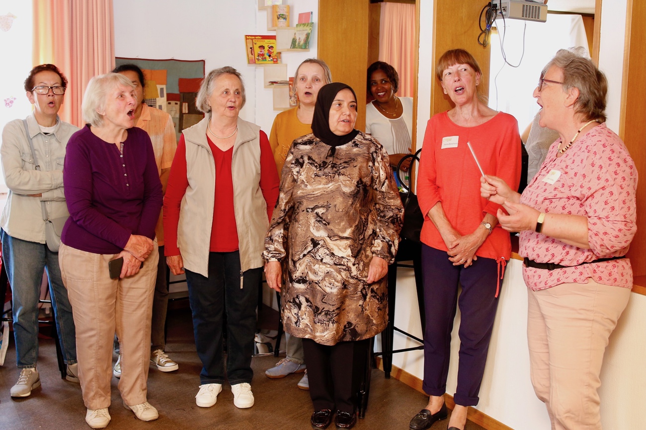Entscheidend für die Integration ist aber, dass Migranten und Schweizer miteinander in Kontakt kommen. Genau dies geschieht mit dem «Dialogchörli», das unter der Leitung von Integra-Schulleiterin Vreni Hofer zwei Mal auftritt. Gesungen wird «Tumbai», sowie ein Jahreszeiten- und ein Friedenslied. Auch beim reichhaltigen Buffet, das wesentlich aus Spenden besteht, sind die verschiedenen Kulturen präsent. Neben Orangenkuchen aus Asarbeidschan steht eine Torte aus der Ukraine. Spiele für Kinder verschiedener Altersstufen, das Musikduo Balsamtiger und viele Gespräche gehören ebenfalls zum fröhlichen Anlass.