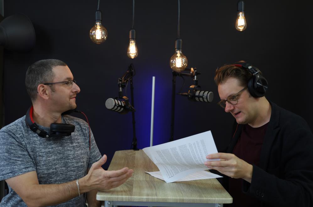 Im Podcast über die Chancen und Gefahren der digitalen Kirche diskutierte der Offline-Mitarbeiter und Theologe Samuel Sarasin mit dem Technik-Spezialisten Pascal Steck in dessen Tonstudio. In seiner Projektagentur hilfmir.ch verknüpft Steck Technik und Glauben. Derzeit erfolge bei der Vermittlung der Bibel ein Zurück-zu-den- Wurzeln. «Früher wurden biblische Geschichten mündlich tradiert, danach folgte mit dem Buchdruck die schriftliche Weitergabe. Und nun werden die Geschichten wieder wie früher erzählt. Einziger Unterschied: Das Digitale ist überall und jederzeit abrufbar », so Steck.