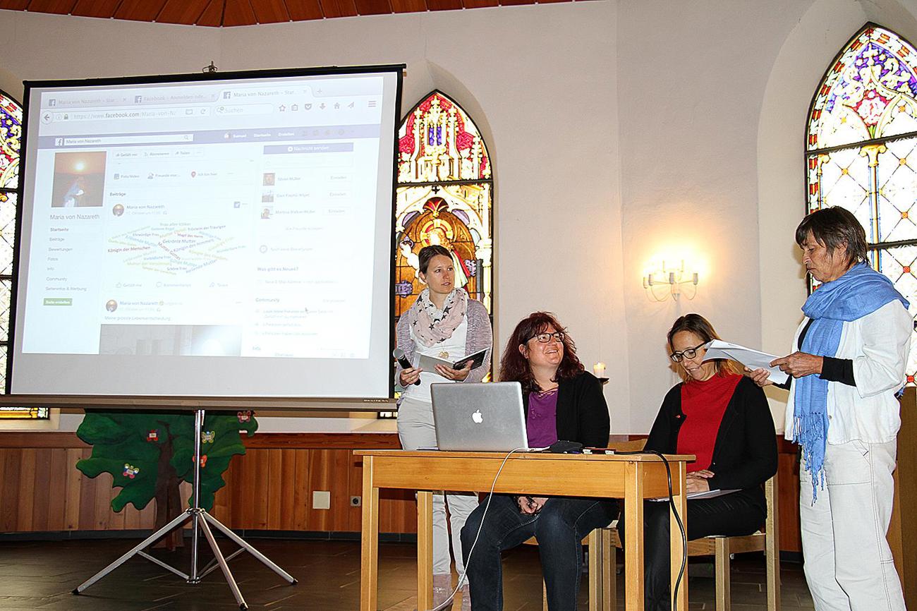 Das Frauen-Team von «Kirche unterwegs» ist bekannt für seine besonderen, kreativen Gottesdienste über Frauenfiguren, welche es im Auftrag der Evangelisch-Reformierten Landeskirche jedes Jahr gestaltet. Unter dem Titel «Maria im Netz» fragte es sich am Sonntag in Niederurnen, wie Maria von Nazareth sich selber gesehen und präsentiert hätte. Da man heute bekanntlich Antworten nicht mehr nur in der Bibel, sondern auch im Internet findet, suchte es Marias Facebook-Profil und wurde tatsächlich fündig.