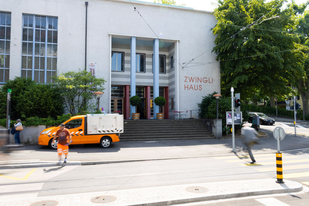 Passanten vor dem Zwinglihaus in Basel.