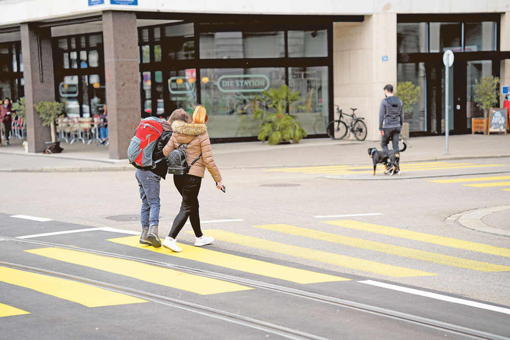 Mystik im Alltag durch kleine Gesten: Unterstützung beim Überqueren der Strasse. | Foto: Ludmila Leuenberger