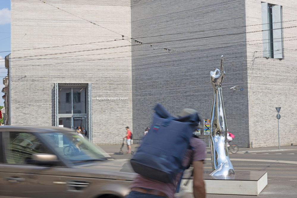 Temporäre Skulptur der Art Basel, mitten im Verkehrskreisel vor dem Kunstmuseum.