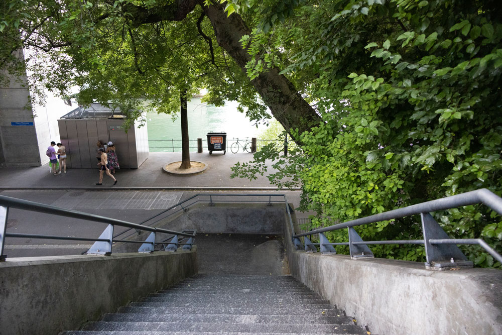 Licht und Schatten beim Abstieg zum Rheinbord: Erholung am Wasser, aber auch Rückzugsort von Randständigen. | Foto: Nicole Aebi