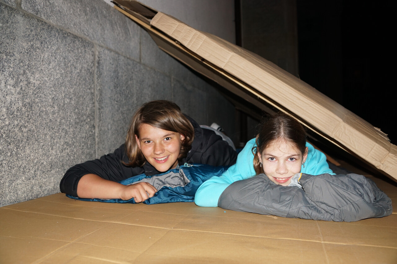 Zurück im Rheintal. Die Sterne funkeln am Himmel. Nach vielen Regentagen ist es trocken, die Temperaturen sind angenehm. Doch auch Regen hätte die Jugendlichen nicht abgeschreckt. «Dann wäre es noch spannender gewesen», glaubt Sarina, und Zoe vermutet, dass sie bei Regen schneller eingeschlafen wäre. Für viele ist es die erste Nacht im Freien. Lydia ist das zweite Mal dabei, weil es das erste Mal so eindrücklich gewesen sei, «und weil wir die halbe Nacht zusammen reden konnten.» Hin und wieder werden die Schlafenden von Kirchenglocken oder von Passanten geweckt, die lächelnd, staunend und fragend an den Kartonhütten vorbeilaufen. Einige wenige diskutieren mit den Leitern, die Nachtwache schieben. Die Nacht verläuft friedlich, Angst haben die Jugendlichen keine. Am Morgen werden sie von der Sonne geweckt und der Hunger wird beim gemeinsamen Frühstück gestillt, während man sich über eine Nacht austauscht, die das Bewusstsein für die weltweite Armut schärfte. «Es war spannend, zu erleben, mit welchen Schwierigkeiten sich ärmere Menschen auseinandersetzen müssen», so Dominik.