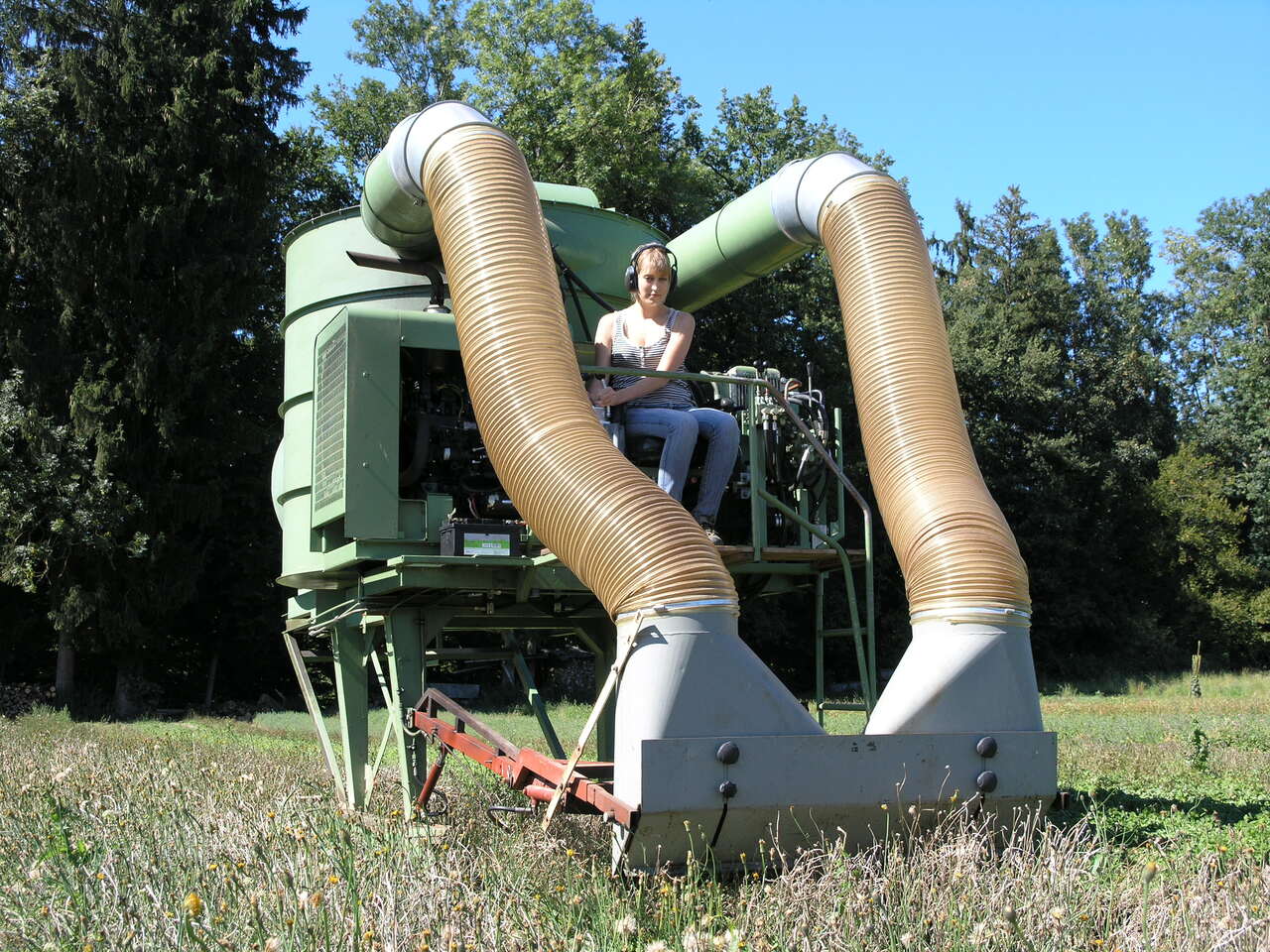 Vor rund 40 Jahren haben die Brüder Christian und Johannes Burri zusammen mit ihren Ehefrauen mit der Wildblumensaatgutproduktion begonnen. Johannes Burri reiste quer durch Europa, um sich mit anderen Saatgutproduzenten auszutauschen. Die beiden Brüder haben die «Staubsauger-Maschine» ausgetüftelt und gebaut. Mit ihren zwei Saugrohren vorne sieht sie aus wie ein zweirüssliger Elefant. Sie kommt bei der Ernte von Körbchenblütlern zum Einsatz, weil verschiedene Arten in dieser Familie ihre Samen mithilfe von Fallschirmchen verbreiten. Je nach Blüte der Pflanze braucht es noch weitere Erntetechniken. Burris haben darum noch zwei andere Erntemaschinen. Gewisse Pflanzen lassen sich aber nur von Hand ernten. Täglich werden die reifen Samenstände gepflückt oder die Pflanzen mit einem Messer abgeschnitten.
