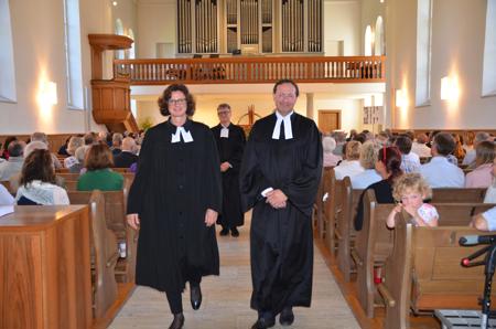 Kirchenratspräsident Wilfried Bührer strahlte beim Anblick der randvoll besetzten Kirche mit Menschen, «deren Glaubensgewissheiten das christliche Leben aufhellen». Dieses «Dabeisein» bei der Ordination liess auch die Erkenntnis zu, dass die zwei Quereinsteiger, beide Jahrgang 1962, während ihrer Ausbildung in ihren Praktikums-Gemeinden bereits nachhaltige Inhalte gepflanzt haben: Sabine Schüz im Praktikum bei Pfarrer Christian Herrmann in Gachnang und Kai Hinz im Praktikum bei Pfarrer Damian Brot in Kreuzlingen.