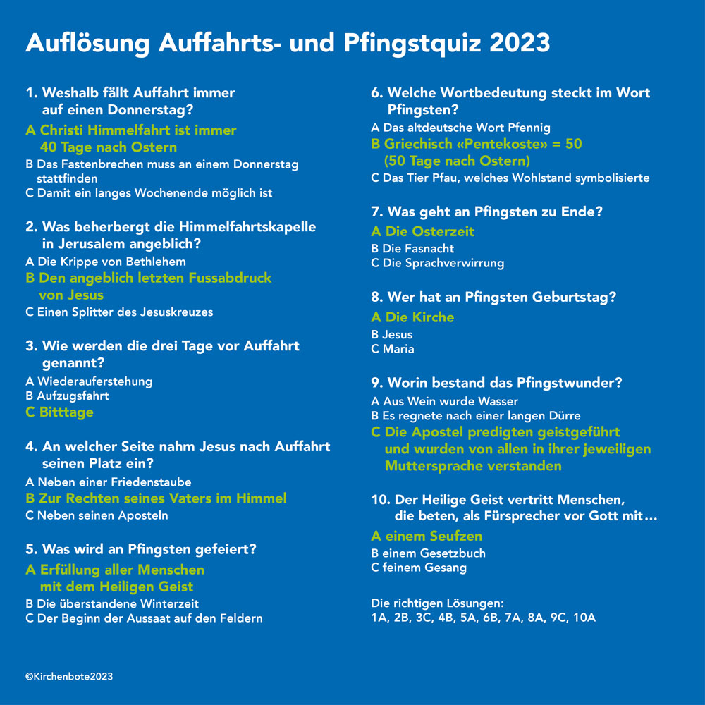 Quiz: Was wissen Sie über Auffahrt und Pfingsten?