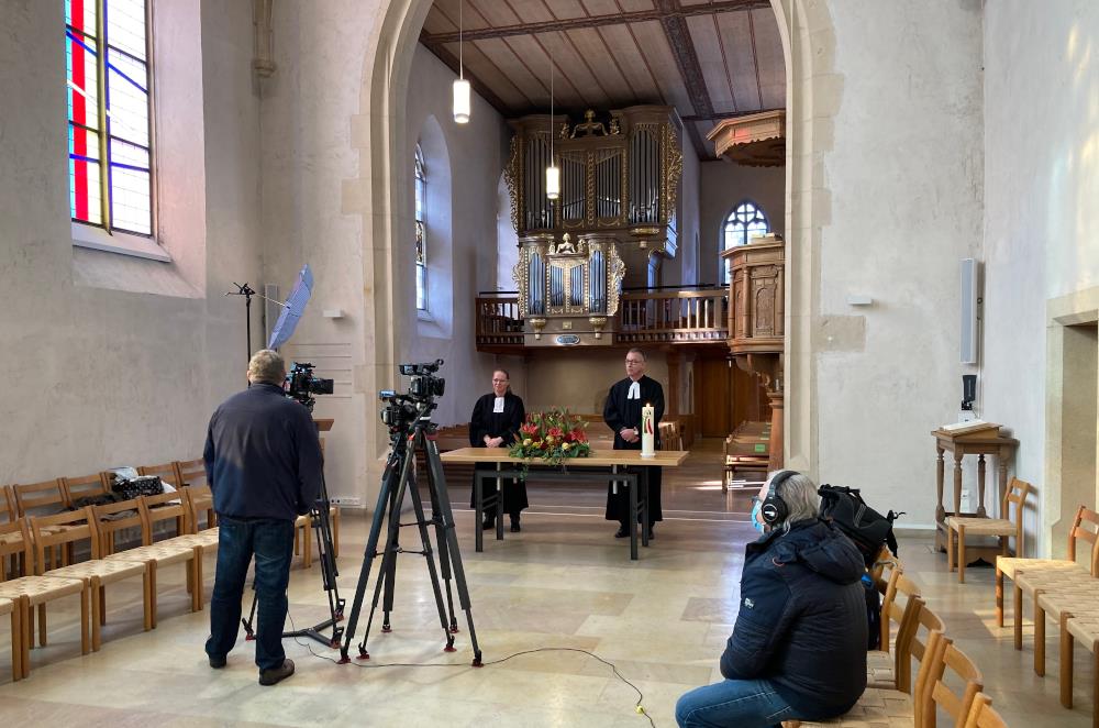 Die Fachstelle Kommunikation koordiniert das Projekt. Die Termine und die Gottesdienste werden zusammen mit den Kirchgemeinden und regioTVplus geplant. Die inhaltliche Verantwortung liege zu einem grossen Teil bei den Kirchgemeinden, so Stephanie Krieger. Die Gottesdienste laufen auch auf Youtube, und die Kirchgemeinden und die Kantonalkirche können sie auf ihren Websites einbinden.