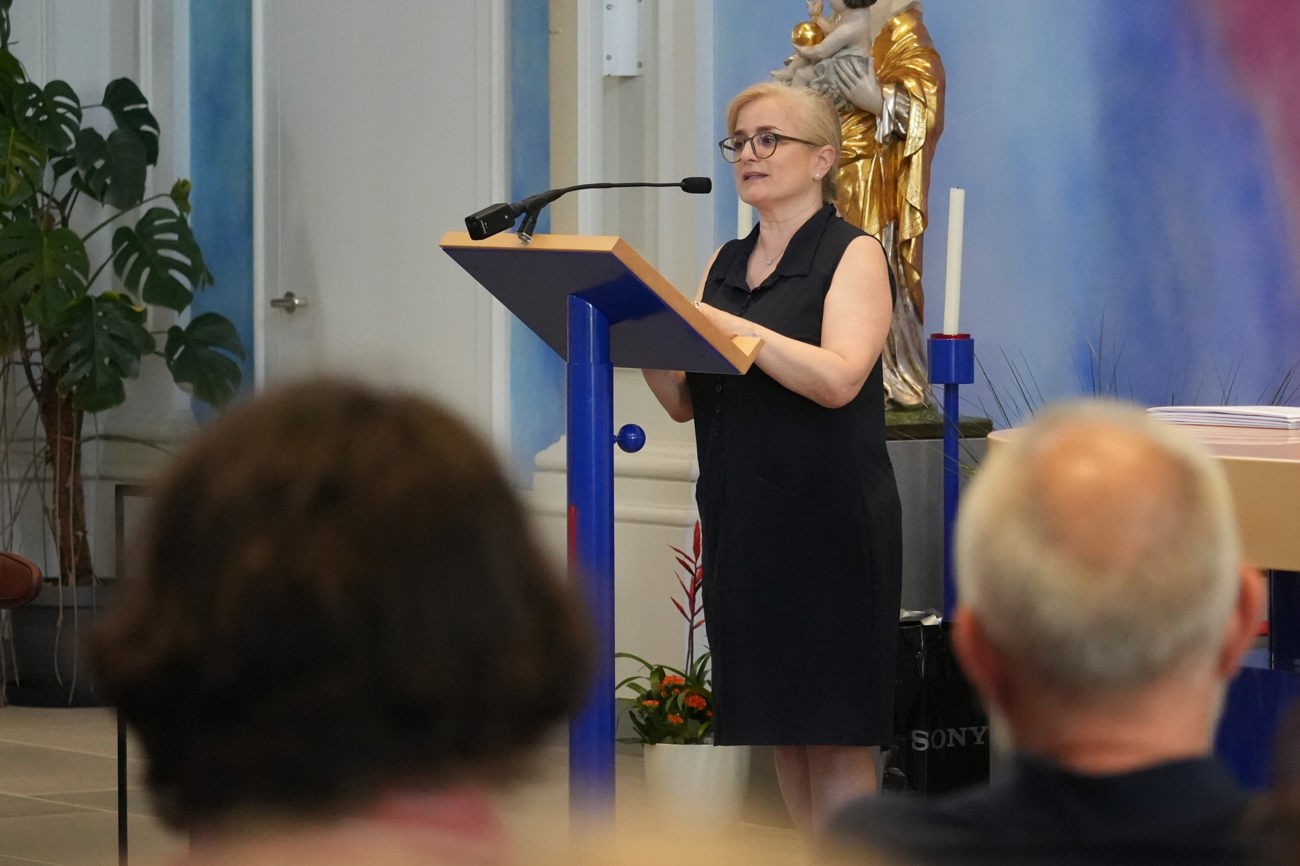 St.Gallens Stadtpräsidentin Maria Pappa sprach als Festrednerin von einem hochstehenden Bildungsangebot, für das sich die Diplomierten entschieden hatten. «Sie tragen jetzt etwas in sich, das viele Menschen in der lauten, überfüllten und oft disharmonischen Welt dringend brauchen», so Pappa. Und sie wurde sogleich auch konkret: «Sie tragen Klang mit Sinn, Stille mit Tiefe, Tradition mit Herz.» Maria Pappa zeigte sich überzeugt, dass die neuen Kirchenmusikerinnen und -musiker mit ihren Fähigkeiten dazu beitragen, dass Menschen Gott begegnen können – durch Töne, Stille, Rhythmus und Klang. Und sie bezeichnete sie als Brückenbauende zwischen Himmel und Erde. Aber auch als Klangwerkerinnen und -werker, die mit Musik den Raum füllen.