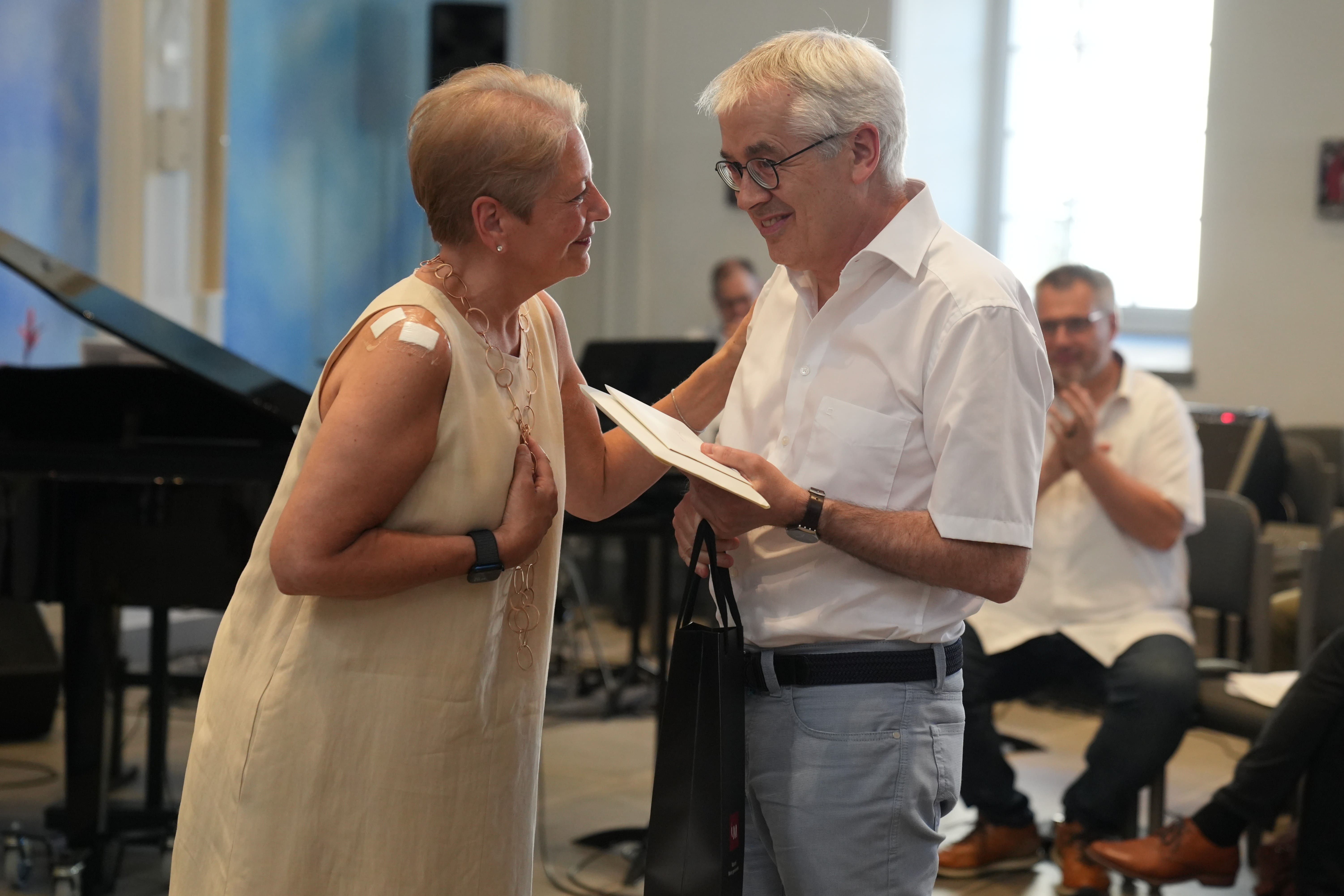 Applaus gabs an diesem Abend jedoch nicht nur für die glücklichen Absolventinnen und Absolventen der Musikakademie, sondern auch für die abtretende Schulleiterin der dkms, Kimberly Brockman, und Martin Hobi, einen der Verantwortlichen für Chorleitung. Letzter tritt in den Ruhestand. Ein Mann der leisen Töne, aber klaren Haltung sei er gewesen, sagte Matthias Wettstein. Und Kimberly Brockman hielt fest, dass Martin Hobi das Fach Chorleitung nicht nur gelehrt, sondern gelebt habe.