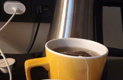 Draussen gewittert es heftig, und jetzt sitze ich nass und erschöpft im Hotelzimmer und bin froh über den Teekocher hier. Draussen lockt der Kirchentag. Ich geh nochmals!