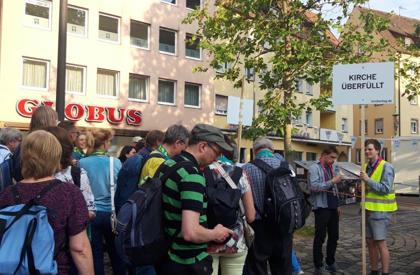 Schlangestehen am Deutschen Evangelischen Kirchentag in Nürnberg.