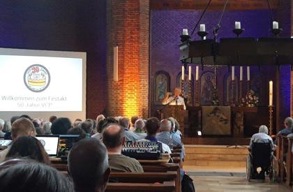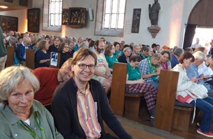 Dann wieder los, um halb zwei soll ich beim Verband Christlicher Pfadfinder ein Grusswort des Präsidiums zum 50-Jahr-Jubiläum überbringen. Die Reformationsgedächtniskirche ist voll besetzt. Alte und junge Pfadfinder und Pfadfinderinnen, alle in ihren charakteristischen Hemden und Aufnäher, hören Müsterlis aus der Geschichte und Gegenwart ihrer Bewegung und feiern dann im Gemeindehaus eine beträchtliche Anzahl von Pfadis, die schon seit 50 Jahren beim VCP dabei sind. Dazu spielt eine supercoole Band maritime Songs, was von Kirsten Fehrs, der Bischöfin aus Hamburg, auch fröhlich zur Kenntnis genommen wird.