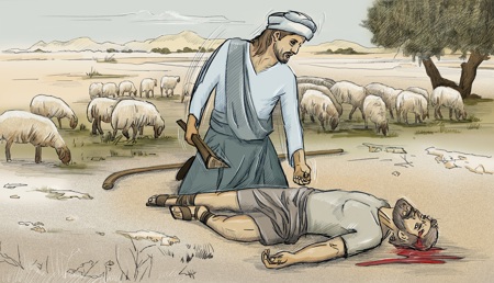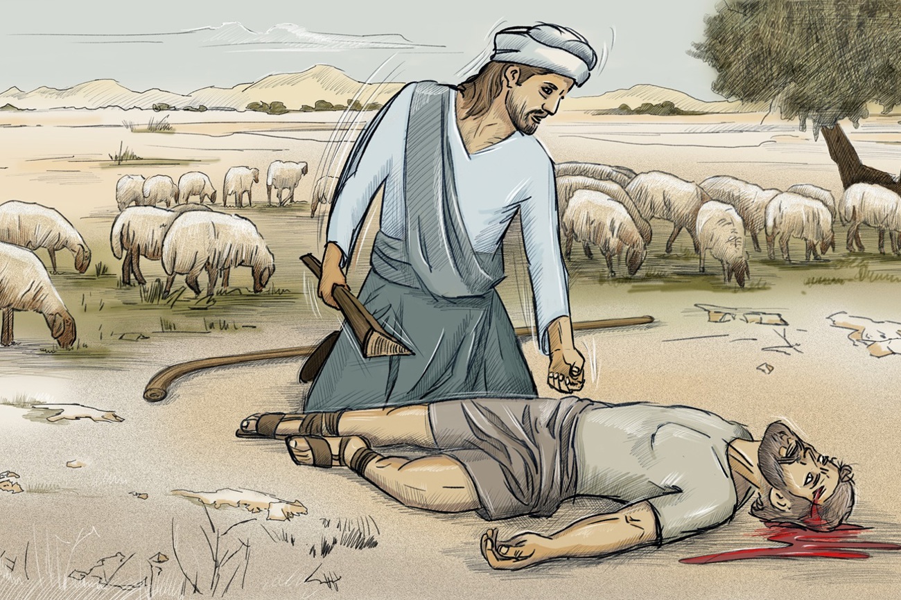 Beide Brüder bringen Gott ein Opfer dar. Das Opfer von Abel sieht Gott gnädig an, aber jenes von Kain nicht. Warum Gott so entscheidet, bleibt zunächst fraglich. Dabei ist doch Kain der ältere Bruder und künftige Erbe. Der jüngere Abel hütet bei ihm die Schafe, aber Weideland und Tiere gehören später einmal Kain. Also müsste Gott doch Kain und nicht Abel gnädig anschauen!