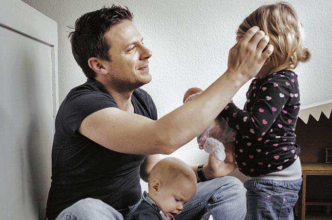 «Die Erfahrung von Kindererziehung, Familienarbeit und Haushalten bringt eine übergeordnete Gelassenheit, Rundumsicht, Weisheit und Reife. In keiner Management-Schule der Welt kann man das sonst lernen», sagt Adriano Maranta, Sozialpädagoge und seit 2014 Hausmann. Eine Erfahrung, die er mit zwölf anderen Vätern teilt, die der Kinderbetreuung viele positive Seiten abgewinnen. Selbst dann, wenn sie zuweilen zur Überforderung wird.