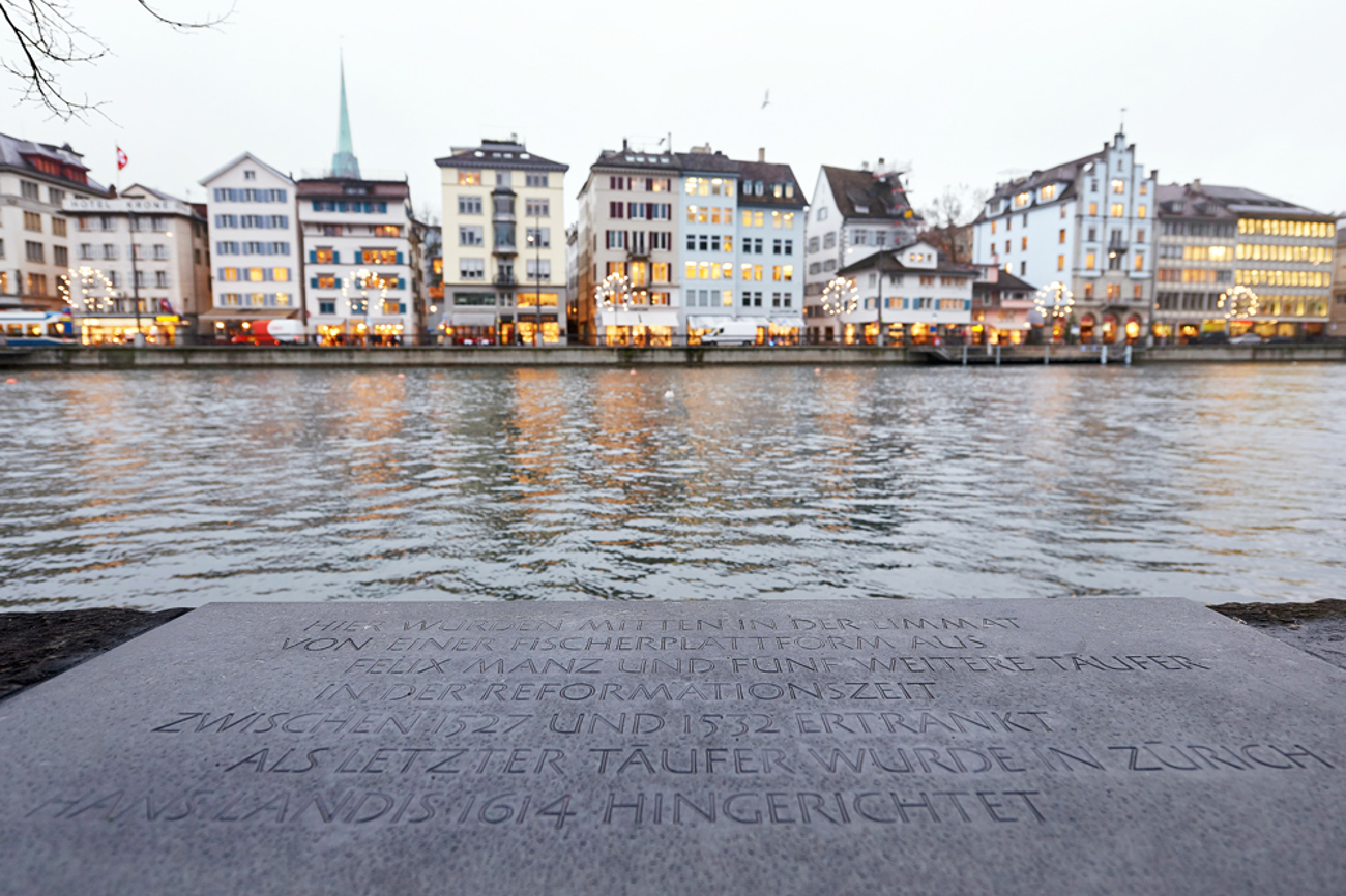 Die Obrigkeit reagierte prompt. Wenige Tage nach der Taufe verbot der Stadtrat die Versammlungen und später die Wiedertaufe unter Androhung der Todesstrafe. Die Täufer wurden verfolgt und eingesperrt. 1527 liess der Zürcher Stadtrat Manz und sieben Glaubensbrüder in der Limmat ertränken – mit der zynischen Bemerkung: «Wer sich zweimal taufen lässt, soll ein drittes Mal untergetaucht werden.»