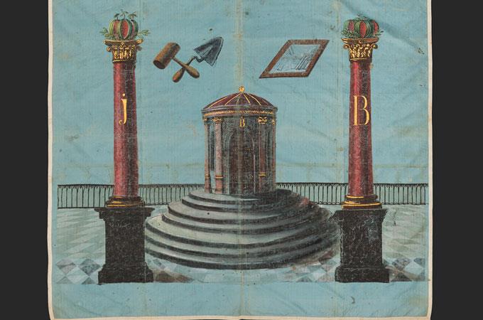 Das liberale Gedankengut ist die eine Seite der Freimaurer. Auf der anderen Seite gibt es die mystisch-religiöse Dimension des Geheimordens. Die Freimaurer beziehen sich nicht nur auf die Steinmetze, auch der Templerorden, altägyptische Mysterienkulte und der Tempel des Salomon spielen eine wichtige Rolle in der Symbolik und den Ritualen der Freimaurer. Auf vielen Dokumenten und Gegenständen findet sich zudem das Kürzel «A.B.a.W.»: «Die nach England orientierten Freimaurer beziehen sich stark auf Gott, den sie den Allmächtigen Baumeister aller Welten nennen», erläutert Schmutz. Die Ausstellung zeigt ein Modell des alttestamentlichen Jerusalemer Tempels mit den beiden bronzenen Säulen, den zwei geflügelten Cherubim und der Bundeslade im Inneren. Bis heute werden die Logen der Freimaurer nach diesem Vorbild eingerichtet.