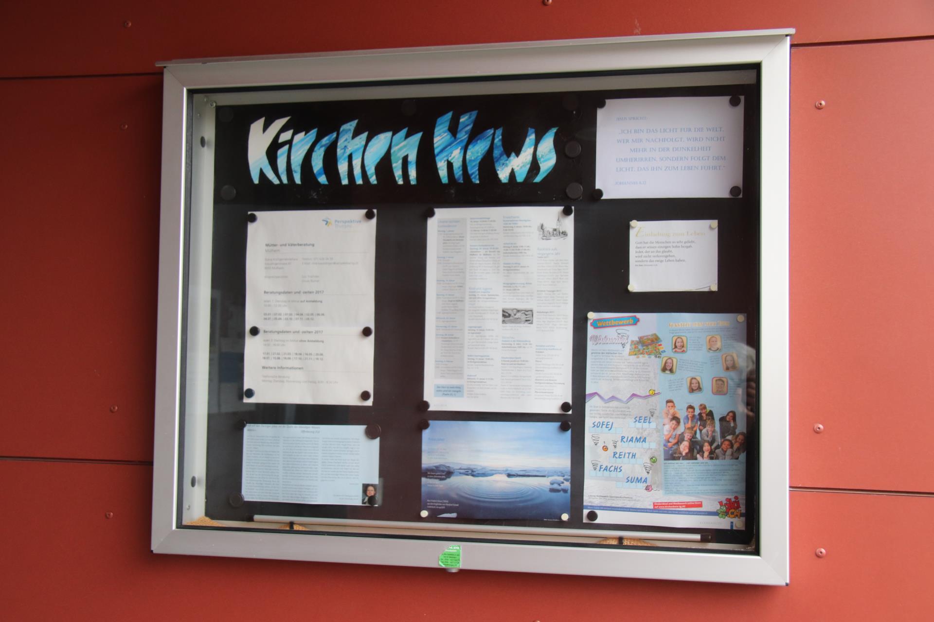 Zur Frage der Daseinsberechtigung sagt er: «Ja, ein Anschlagkasten ist auch im digitalen Zeitalter sinnvoll, weil dieser ein Imageträger einer lebendigen Gemeinde ist.» Der Begriff «Schaukasten» sei ihm lieber: «Es ist ein Schaufenster in das Wirken einer Kirchgemeinde und bringt Informationen dort an den Mann und die Frau, die unmittelbar vor Ort notwendig sind.»